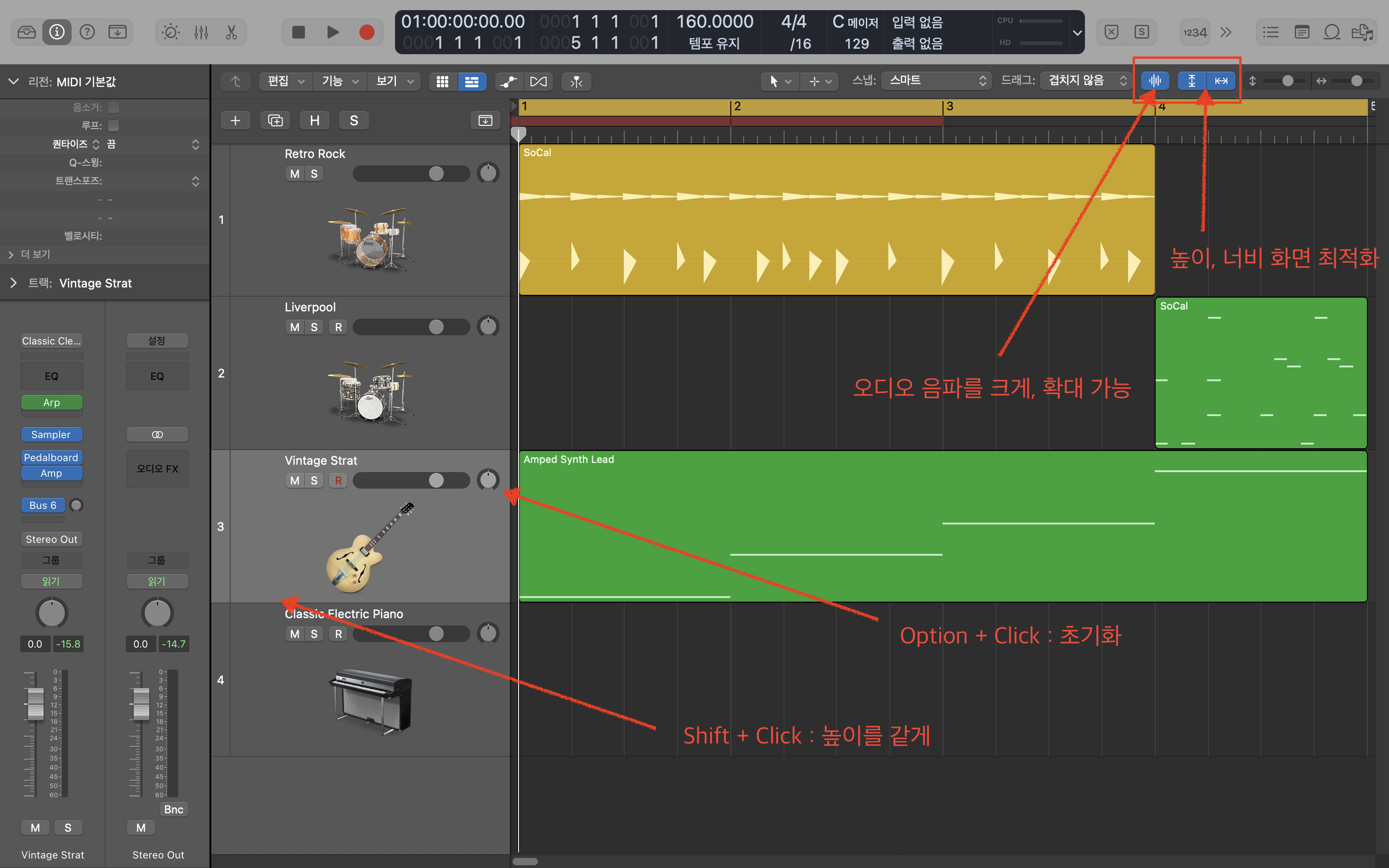 (트랙 경계에) Shift + Click : 모든 트랙의 높이를 같게
