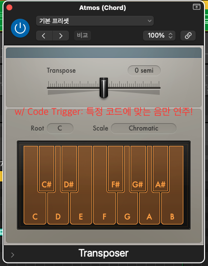 키보드를 이용해 트리거 섹션을 지정해주면 (파란색), 중간에 특정 키 입력을 통해 아르페지오 양상에 변화를 줄 수 있다.